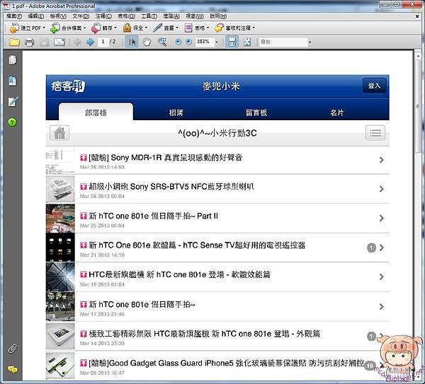 果然在剛剛設定指定的目錄裏多了一個PDF檔案,這真是太方便了,直接幫您轉成PDF檔案,而輸出來的效果,就是和PDF軟體轉出來的是一樣的,小米就不在擷圖放上來。而且用上面的方法還需要人工去按一下存檔,而直接透過ZOTECH Mobile Print內建的功能,只要動動指頭,一下子檔案就變成PDF檔了。